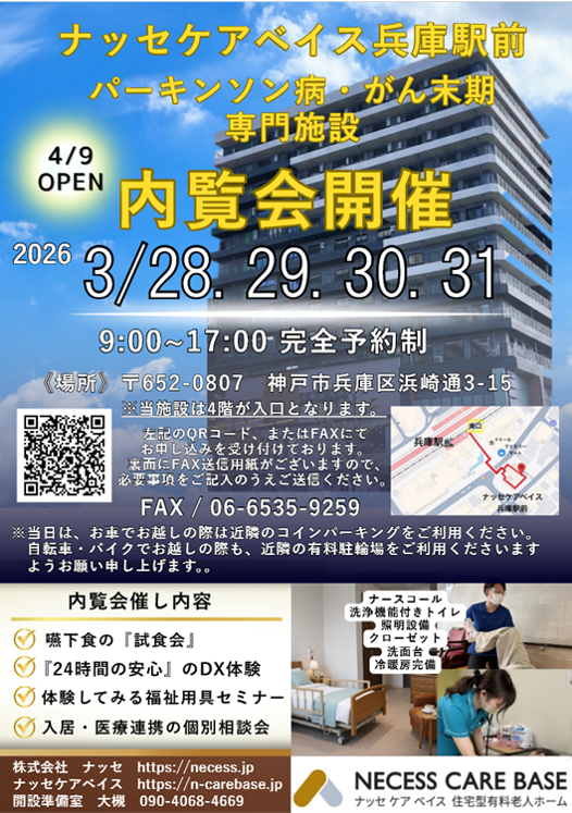 2026年4月に新規オープンする「パーキンソン病・がん等の難病専門」の住宅型有料老人ホームです。