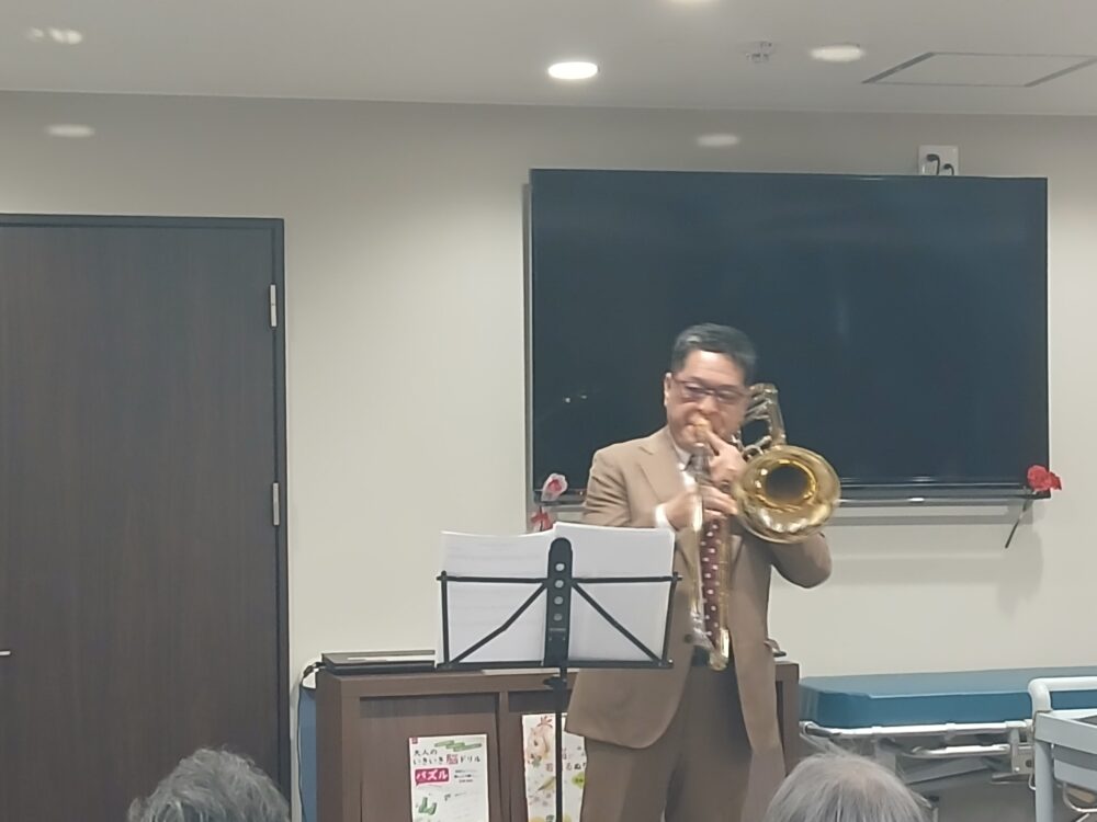 本日は、トロンボーン竹田さんがナッセケアベイス宝塚にお越しいただいき、