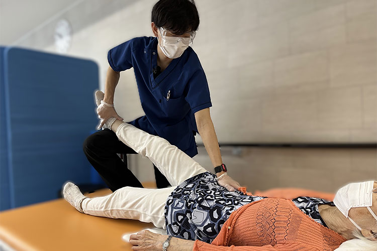 当施設では、理学療法士・言語聴覚士・作業療法士を配置し、パーキンソン病やがん末期の方に対して週5日の個別リハビリや集団リハビリを実施しています。