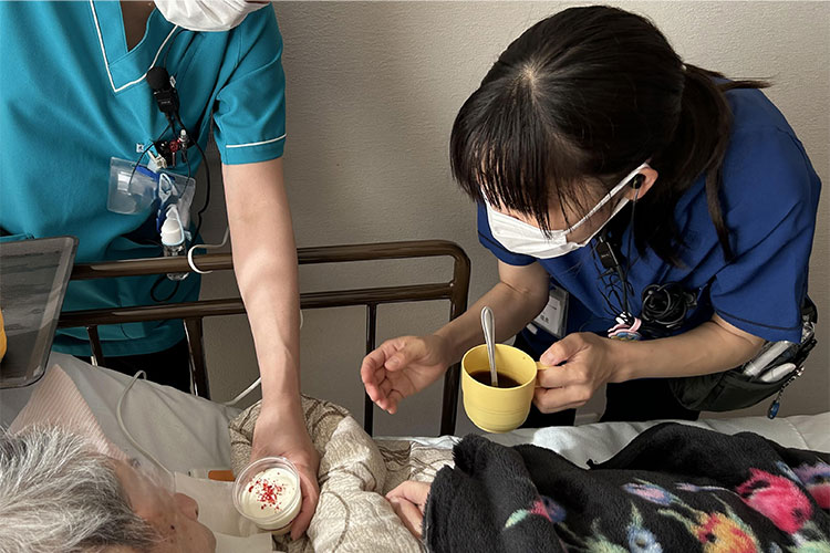 当施設では各専門職でチームを形成し、お一人おひとりのご要望に応じた『最期まで自分らしく生きる』ための食支援を提供しています。